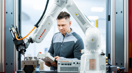 ما در شرکت روبومیشن با تکیه بر دانش فنی روز، تجربه عملیاتی و تکنولوژی ربات‌های صنعتی، راهکارهای نوین اتوماسیون صنعتی را برای کارخانه‌ها و خطوط تولید ارائه می‌دهیم. هدف ما افزایش بهره‌وری، کاهش خطای انسانی و ارتقاء کیفیت تولید است. ما معتقدیم آینده صنعت در دستان تکنولوژی است. تیم ما با شور، تخصص و تعهد، ربات‌هایی طراحی می‌کند که نه تنها کار می‌کنند، بلکه فکر می‌کنند؛ تا شما یک گام جلوتر از سایر رقبای خود باشید